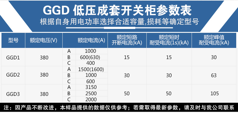 GGD低壓開關(guān)柜是一種GGD型交流低壓配電柜,用于固定接線低壓配電柜,區(qū)分為GGD1GGD2GGD3三種類型,分段電流能力不同。是根據(jù)能源部主管上級,廣大電力用戶及設(shè)計(jì)部門的要求,本著安全、經(jīng)濟(jì)、合理、可靠的原則設(shè)計(jì)的新型配電柜。