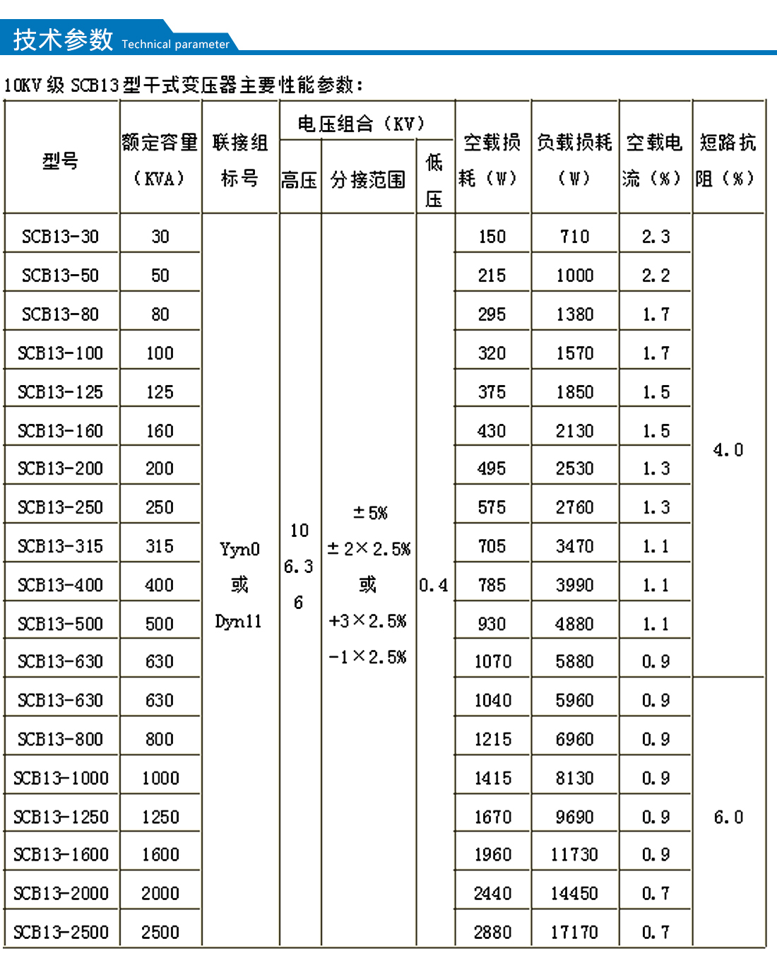 【額定容量】:30-2500kva 【額定電壓】:10kv 【聯(lián)結(jié)組別編號】:Dyn11,Yyno