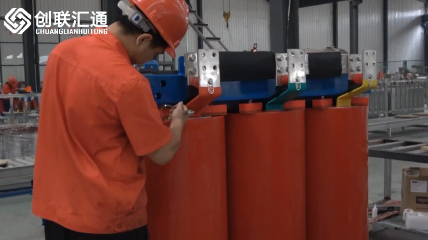 創(chuàng)聯(lián)匯通專業(yè)變壓器生產(chǎn)廠商為您實拍變壓器生產(chǎn)流程,實力廠家,精準(zhǔn)工藝,看到見,摸得著。1000KVA干式變壓器完工前螺栓緊固。