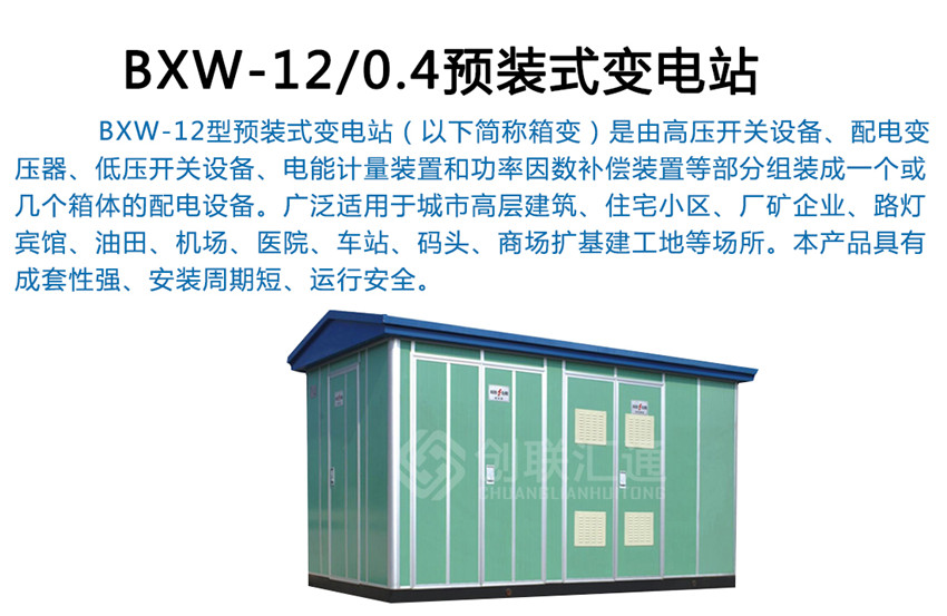 BXW-12型預(yù)裝式變電站(以下簡(jiǎn)稱箱變)是由高壓開關(guān)設(shè)備、配電變壓器、低壓開關(guān)設(shè)備、電能計(jì)量裝置和功率因數(shù)補(bǔ)償裝置等部分組裝成一個(gè)或幾個(gè)箱體的配電設(shè)備。廣泛適用于城市高層建筑、住宅小區(qū)、廠礦企業(yè)、路燈、賓館、油田、機(jī)場(chǎng)、醫(yī)院、車站、碼頭、商場(chǎng)擴(kuò)基建工地等場(chǎng)所。本產(chǎn)品具有成套性強(qiáng)、安裝周期短、運(yùn)行安全