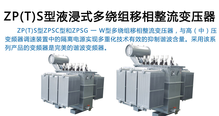 ZP(T)S型ZPSC型和ZPSG—W型多繞組移相整流變壓器,與高(中)變頻器調(diào)速裝置中的隔離電源實現(xiàn)多重化技術(shù)有效的抑制諧波含量。