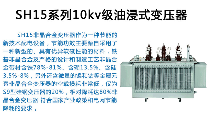 SH15非晶合金油浸式變壓器可用于高層建筑、商業(yè)中心、地鐵、機場、車站、工礦企業(yè)和發(fā)電廠,特別適用易燃、易爆和防火要求高的場所。因此,非晶合金變壓器是戶內(nèi)供電網(wǎng)絡中最理想的節(jié)能型配電設備.