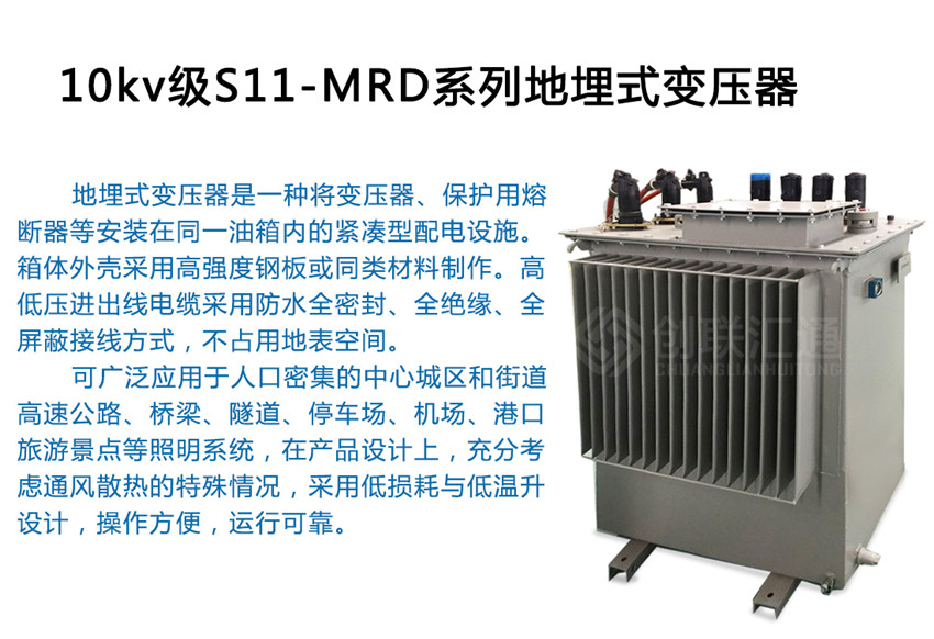 S11-MRD地埋式變壓器由于其占地面積小,安裝方便和免維護(hù)等特點(diǎn),大多用在城市公用配電、停車場(chǎng)、高架、機(jī)場(chǎng)、港口、隧道、旅游景點(diǎn)等用地緊張的場(chǎng)所,城網(wǎng)配電改造以及對(duì)占地面積和高度要求嚴(yán)格的場(chǎng)所。